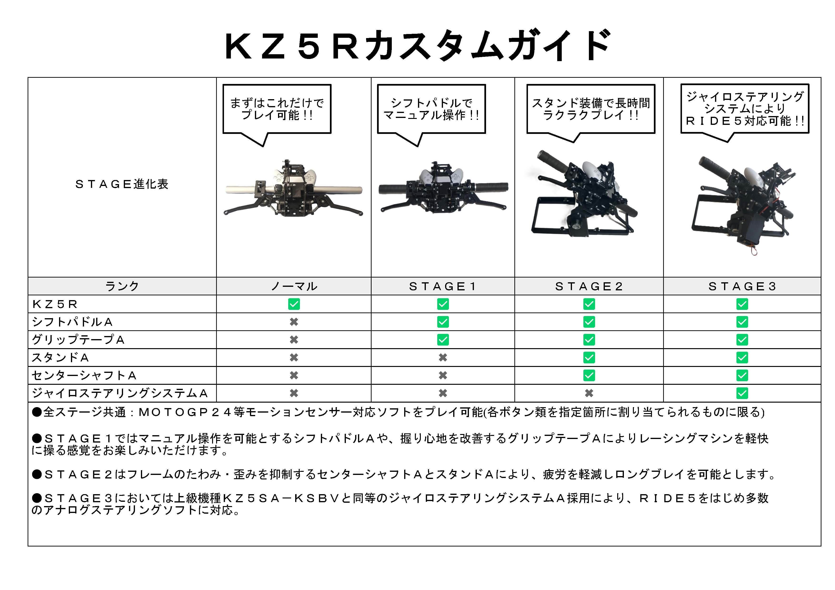 KZ5Rシリーズはオプションパーツによるアップグレードにも対応しており、今後の拡張性も確保しています。バイクゲームファンやシミュレーター体験を求める方に最適なマシンです。